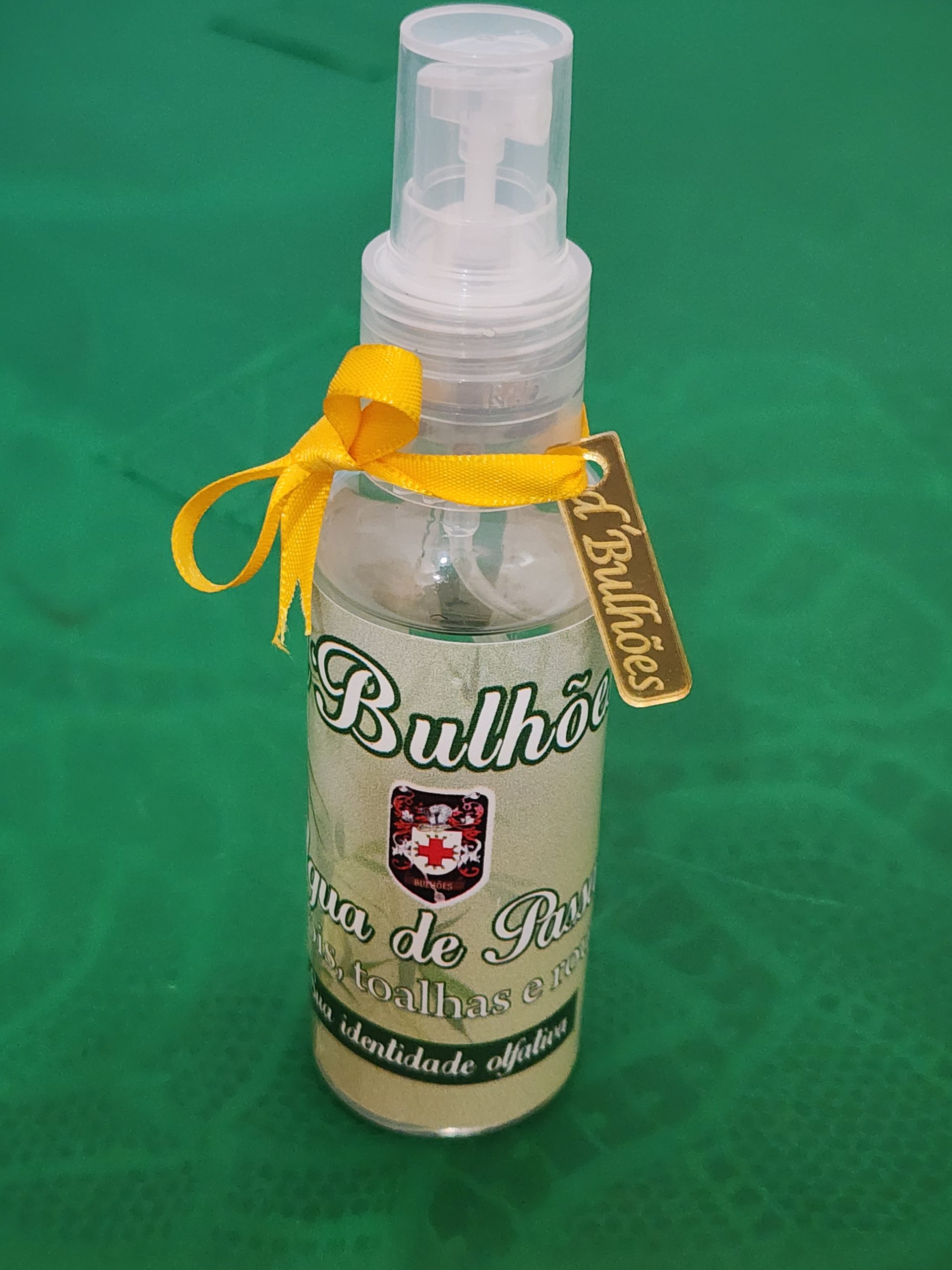 Agua perfumada d’Bulhões, para passar roupas, lençóis, colchas, fronhas e outros, ficando com boas energias e com “sua identidade olfativa”. Possui um perfume suave podendo ser usada tabém em enxovais de bebês deixando-os macios e com perfume duradouro e singelo.