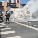 Imagens mostram o veículo consumido pelas chamas, que atingiu a fiação. O Departamento Municipal de Transportes e Trânsito (DMTT) chegou a fechar a via no sentido Centro. Devido às chamas, apenas uma faixa da avenida está liberada para o tráfego.
