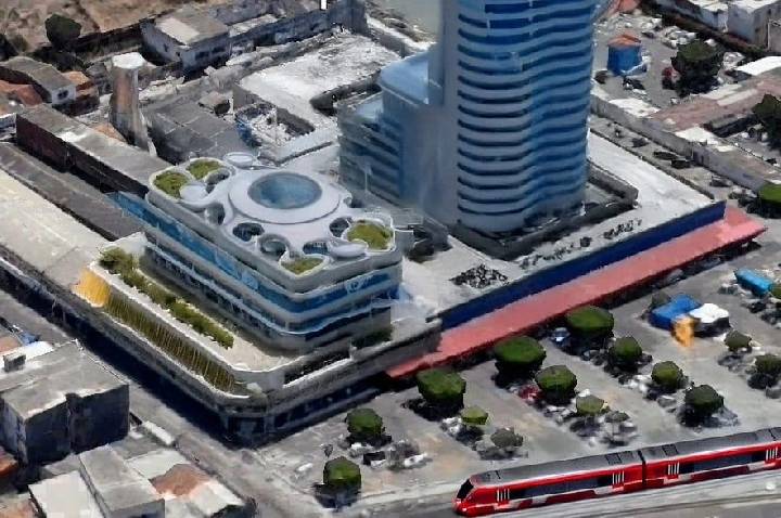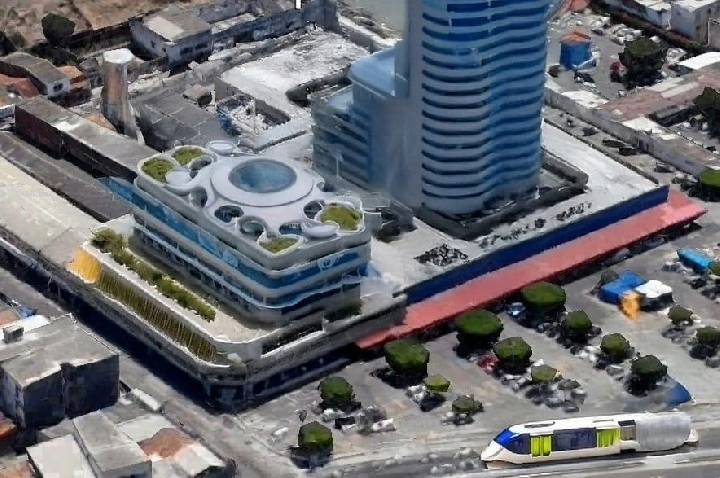 Recentemente, recebemos imagens de um projeto de restauração que propõe dar nova vida ao espaço. A proposta, assinada pelo arquiteto e urbanista professor Dilson Ferreira, prevê a criação de um ambiente moderno, capaz de abrigar lojas, escritórios e até mesmo um novo shopping. O projeto destaca cores, formas e estruturas pensadas para valorizar a arquitetura local e devolver à área seu potencial econômico e social, atraindo turistas, visitantes e investidores para a região.